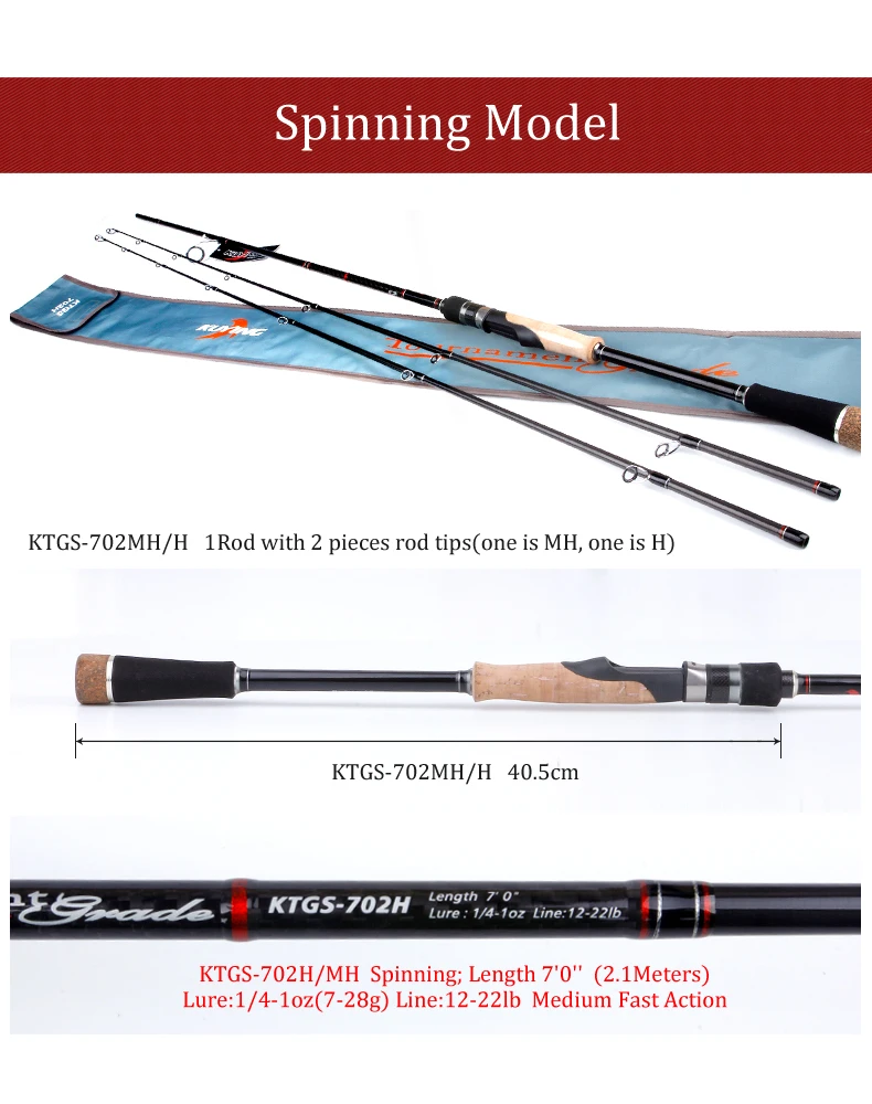 Related Product for KUYING 2.1m Tournament Lure Fishing Rod Double Tips MH H Hard Casting Spinning Carbon Fiber Cane Po